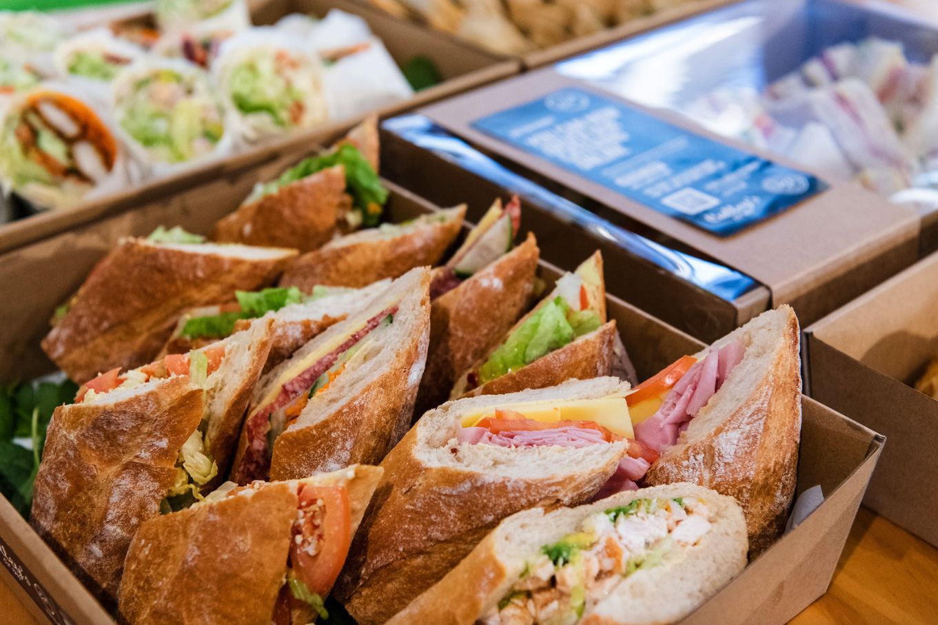 Freshly house-baked baguettes filled with an assortment of delicious classic fillings, including ham, salami, roast chicken and cheese (12 pieces per tray)